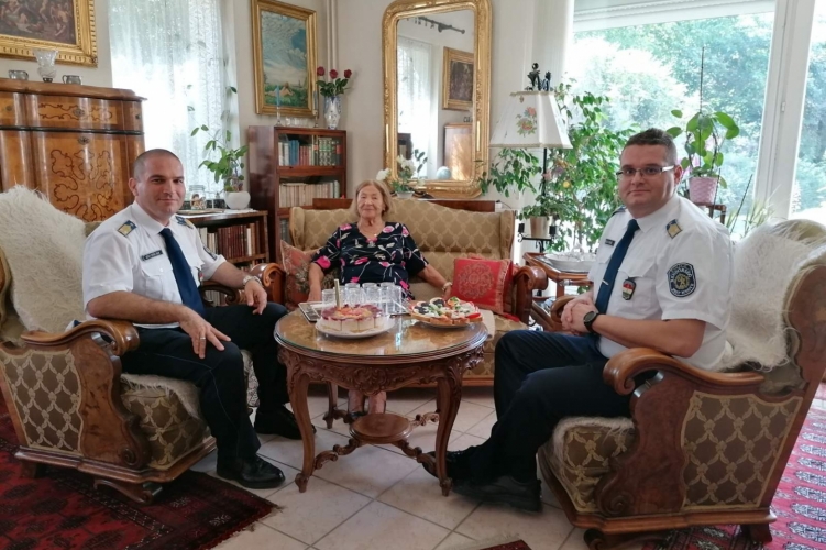 Az Érdi Rendőrkapitányság nevében Nogula Tamás r. alezredes kapitányságvezető és Kürti István r. alezredes közlekedésrendészeti osztályvezető, 2021. július 1-én látogatott el az asszonyhoz, hogy e jubileumi esemény alkalmából felköszöntsék.