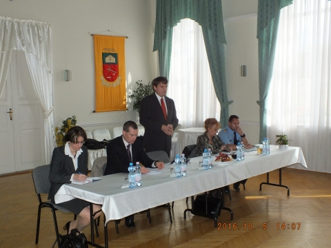 Dr. Szalay Péter r. alezredes, a Kisbéri Rendőrkapitányság vezetője köszöntötte a járás polgármestereit, jegyzőit és egyházi vezetőit azon a fórumon, amit 2016. október 5-én rendeztek a kisbéri polgármesteri hivatal dísztermében.