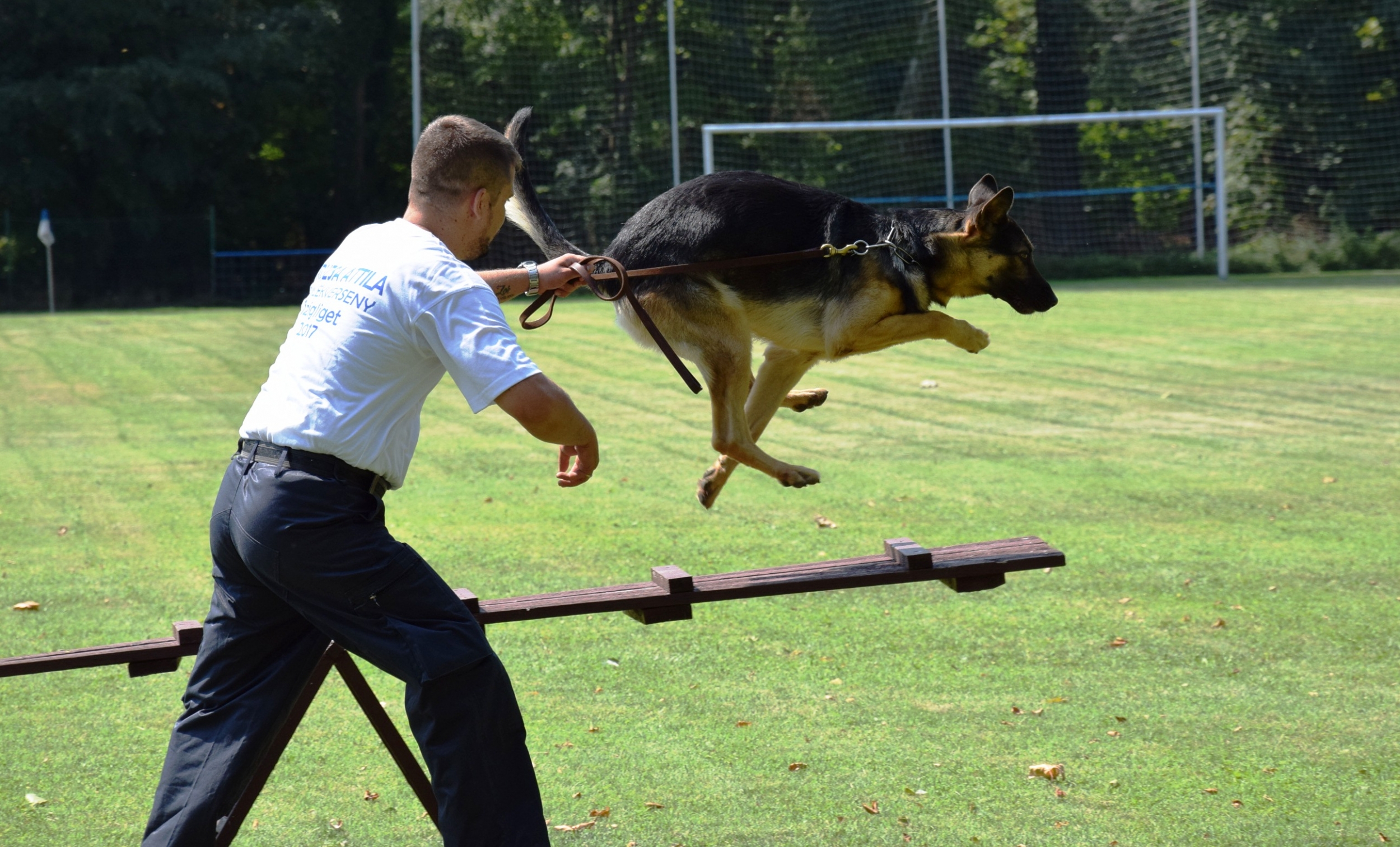 Veszprém és Zala megyéből összesen 13 kutyavezető és szolgálati négylábúja érkezett a szigligeti sportpályára, hogy összemérjék tudásukat.