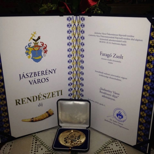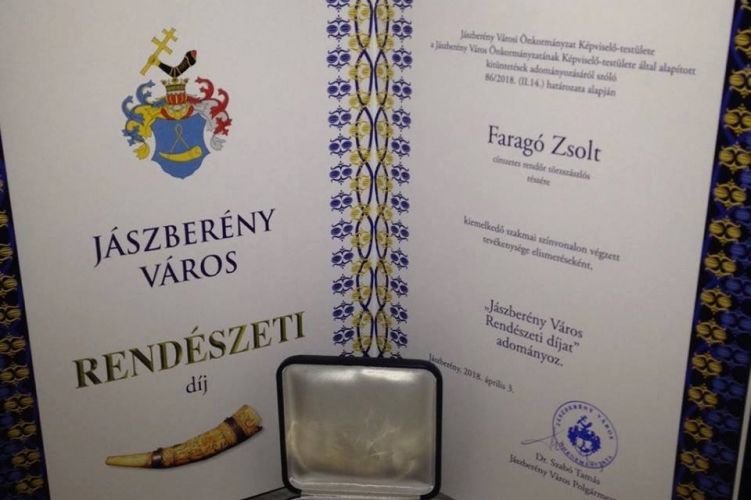 A rendezvényen Jászberény Város Rendészeti díját idén Faragó Zsolt címzetes rendőr törzszászlós, a Jászberényi Rendőrkapitányság Közlekedésrendészeti Osztály helyszínelő és balesetvizsgálója vehette át magas színvonalon végzett szakmai tevékenysége és példamutató munkája elismeréseként.