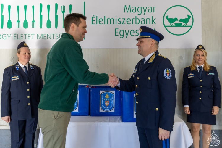 Az adományokat dr. Markó Attila r. dandártábornok, Budapest rendőrfőkapitányának rendészeti helyettese adta át 2024. december 17-én Nagygyörgy Andrásnak, a Magyar Élelmiszerbank Egyesület külső kapcsolatok igazgatójának.