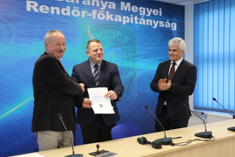 Dr. Gulyás Zsolt rendőr ezredes, megyei rendőrfőkapitány, valamint a Pécsi Tudományegyetem részéről Dr. Miseta Attila János rektor és Jenei Zoltán kancellár együttműködési megállapodást írt alá 2020. január 9-én a Baranya Megyei Rendőr-főkapitányságon megtartott munkaértekezleten.
