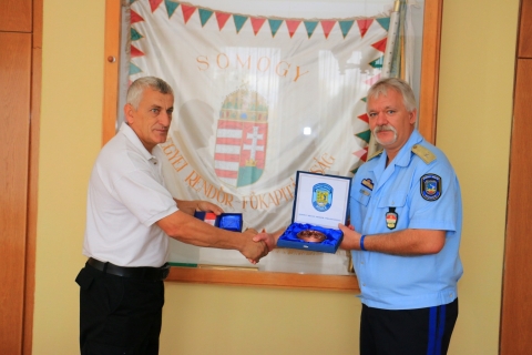 A Somogy Megyei Rendőr-főkapitányság vezetője 2016. október 3-án köszöntötte a Kaposvári Önkéntes Tűzoltó és Életmentő Egyesület elnökét a főkapitányság épületében.