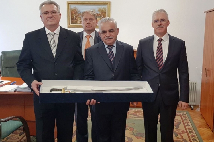 A Hajdú-Bihar Megyei Rendőr-főkapitányság vezetője, Dr. Gyurosovics József rendőr dandártábornok kollégáival, Sebestyén Zoltán rendőr ezredessel, bűnügyi rendőrfőkapitány-helyettessel és a Debreceni Rendőrkapitányság vezetőjével, Dr. Uzonyi Attila rendőr ezredessel a közös munka elismeréseként egy Kossuth karddal köszönt el a vezető ügyésztől.