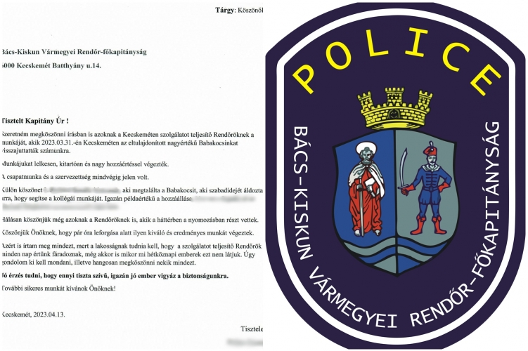 Egy szerencsés kimenetelű bűnügy sértettje ragadott tollat, és megköszönte a kecskeméti rendőrök munkáját.