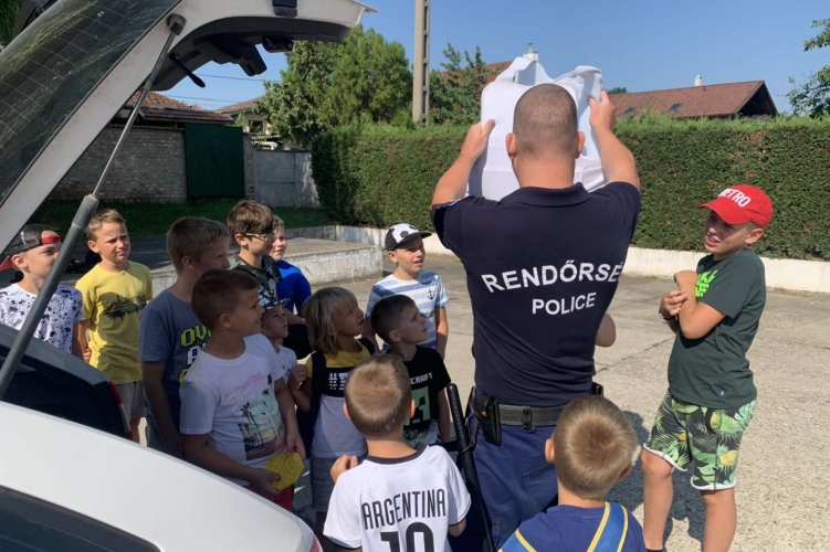 Félbeszakadt a mérkőzés a helyi sportpályán, amikor a focitáborozók egy begördülő rendőrautót vettek észre. Először csak távolról szemlélték a látványt, majd mikor kiderült, hogy Kohlhoffer Rudolf főtörzsőrmester hozzájuk érkezett, közelebb merészkedve vették alaposabban szemügyre a szolgálati autót és benne lévő kincseket.
