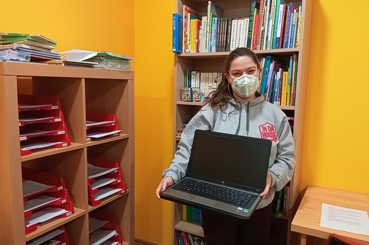 A laptop az egyesület által támogatott, a koronavírus világjárvány következtében online oktatásban résztvevő gyermekek oktatásának támogatását szolgálja.