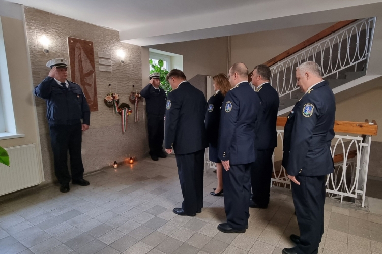 Dr. Kalmár Zsolt r. ezredes, bűnügyi rendőrfőkapitány-helyettes a vezetői állomány jelenlétében helyezte el az emléktábláknál a kegyelet koszorúját. A rendezvényen résztvevők főhajtással tisztelegtek mindazon rendőrök emléke előtt, akik szolgálat közben hősi halált haltak.
