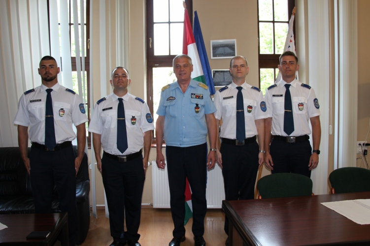 A Nemzeti Közszolgálati Egyetem frissen végzett hadnagyait Farkas József rendőr dandártábornok vármegyei rendőrfőkapitány fogadta és köszöntötte július 1-jén.