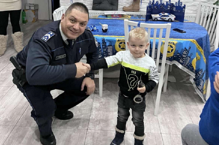 Történt ugyanis, hogy Áden apukája gondolt egyet és azt kérte a Pest vármegyei rendőröktől, hogy születésnapján autóztassák meg a speciális járgányokért rajongó kisfiát. Így esett, hogy két egyenruhás érkezett otthonukba kora reggel. Míg a bevetésre kész járgány az utcán parkolt, a rendőrök „megrohamozták” a házat és az ifjú ünnepelt ébredéséig feldíszített lakásban üdvözölték az álmos szemekkel előbújó, meglepett és megszeppent kisfiút. A dekoráció is egyértelművé tette, olyan helyre toppantak, ahol az apróságok - finoman szólva is - élénk érdeklődést mutatnak a rendőrség és főként a rendőrautók iránt.
