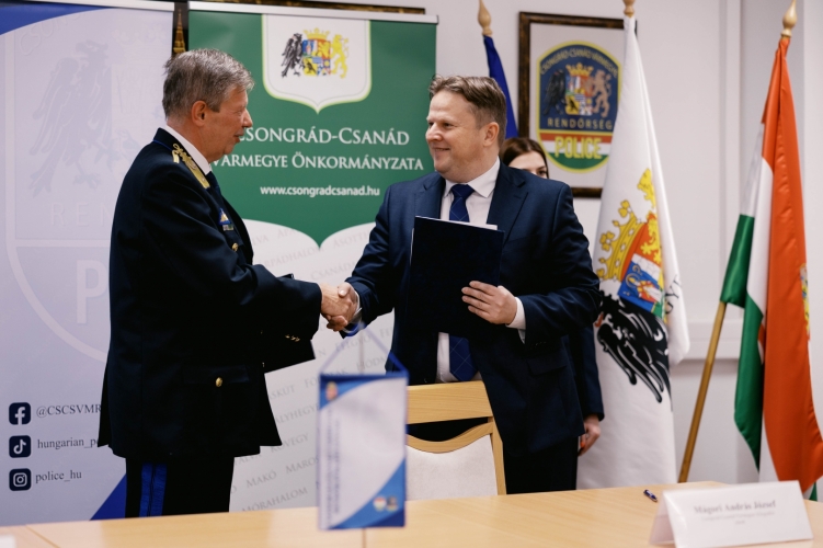 Ünnepélyes keretek között, február 13-án került sor azon eszközök átadására, melyek a jövőben a Csongrád-Csanád Vármegyei Rendőr-főkapitányság járőreinek, nyomozóinak, valamint bűnmegelőzési szakembereinek a munkáját hivatottak segíteni. Csongrád-Csanád Vármegye Önkormányzata a több mint egymillió forint értékű adományt a rendőrséggel együttműködve állította össze, így a technikai eszközök – melyek között tabletek, webkamerák, külső akkumulátorok, monitorok és billentyűzetek is vannak – a lehető legeredményesebben szolgálják majd a rendfenntartást, a bűncselekmények felderítését, valamint az áldozattá válás megelőzését. A jeles eseményt Mágori András József, az önkormányzat elnöke tisztelte meg jelenlétével, aki az átadást megelőzően nagyra értékelte a rendőrség és az önkormányzat együttműködését, méltatta a rendőrök munkáját. Dr. Polyák Zsolt r. dandártábornok, rendőrfőkapitány kifejtette, hogy milyen céllal kerülnek átadásra a korszerű eszközök; hangsúlyozta, hogy a készülékek közvetlenül az állampolgárok gyors, eredményes és kényelmes ügyintézését hivatottak segíteni. A rendőrfőkapitány megköszönte a támogatást, majd négyszemközti, szakmai megbeszélést folytatott a Közgyűlés elnökével. A felek az esemény végeztével megerősítették közös szándékukat abban, hogy egymás munkáját támogatva, szoros, gördülékeny és folyamatos együttműködésben szavatolják Csongrád-Csanád vármegye közbiztonságát.