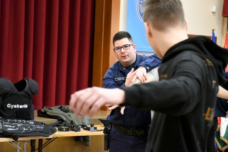 A fiatalok közelebbről is bepillantást nyerhettek a bűnügyi technikusok és a közrendvédelmi szakterület munkájába. A Veszprém Vármegyei Rendőr-főkapitányság Bűnügyi Technikai Osztály vezetőjének előadását interaktív foglalkozás követte, amelynek során a diákok maguk is kipróbálhatták a nyomkutatás és –rögzítés technikáit, eszközeit. A rendőrkapitányság közrendvédelmi osztályának munkatársai pedig intézkedéstaktikai foglalkozást tartottak a diákok bevonásával, amelyet fegyvertechnikai bemutató követett. A diákoknak lehetőségük nyílt megtekinteni a rendőrök szolgálati felszereléseit és gépjárműveit is.