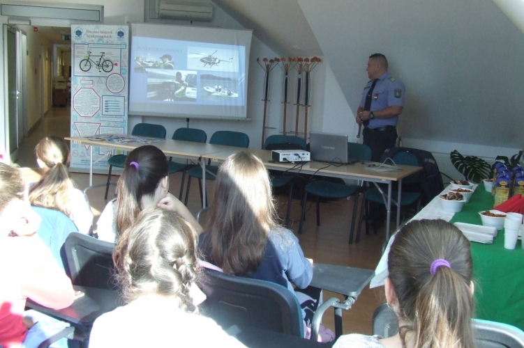 A gyerekek betekintést nyerhettek a rendőrök napi feladatainak végrehajtásába; irodáikban látogatták meg a szolgálatirányító parancsnokot, valamint a nyomozókat. Az őrnagy a rendőri munka bemutatásán túl beszélt a gyermekeknek a gyalogosokra és kerékpározókra vonatkozó fontosabb KRESZ szabályokról, valamint a jelzőtáblákról, mely tudásukat játékos módszerrel, kirakóval elevenítettek fel. A diákok balesetmegelőzést segítő ajándékokkal - fényvisszaverő - hátizsákkal és karpereccel, valamint édességekkel térhettek haza.