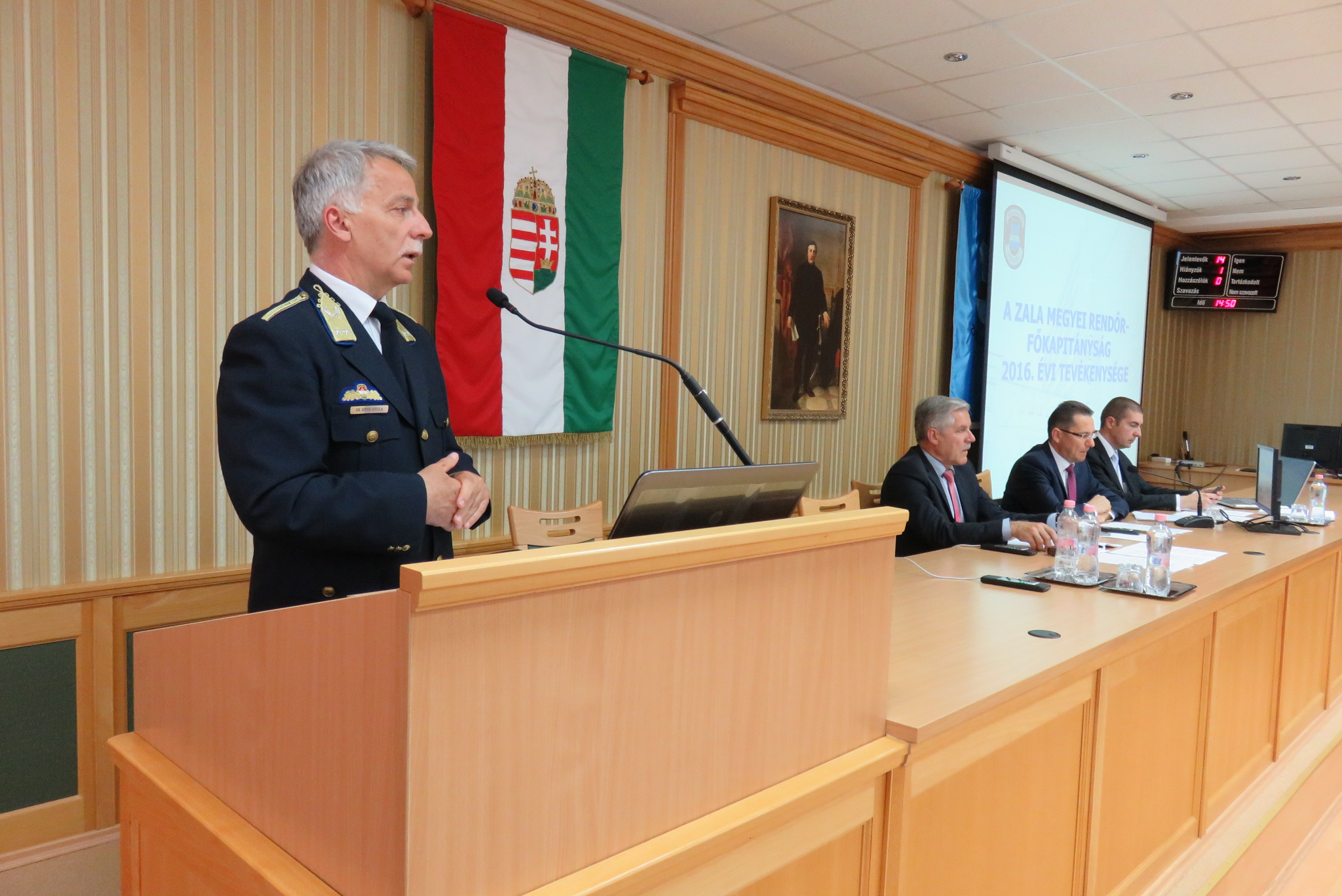 A Zala Megyei Önkormányzat Közgyűlése 2017. április 27-én megtartott ülésén napirenden szerepelt a Zala Megyei Rendőr-főkapitányság közbiztonságának 2016. évi helyzetéről, a közbiztonság érdekében tett intézkedésekről és az azokkal kapcsolatos feladatokról szóló beszámoló.