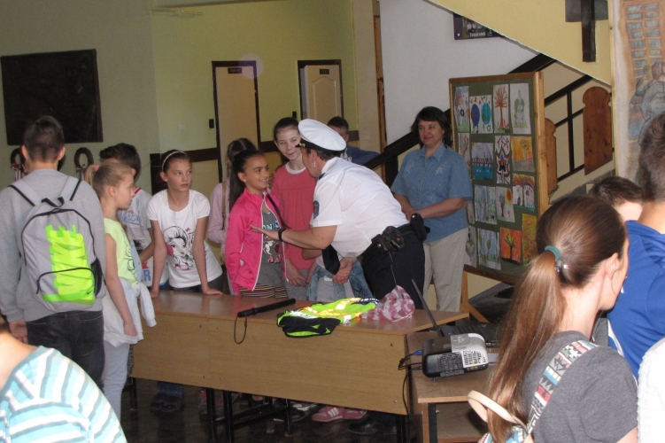 Az egyenruhások a rendezvény ideje alatt kötetlen beszélgetések során felhívták a gyerekek figyelmét a biztonságos gyalogos és kerékpáros közlekedésre.
