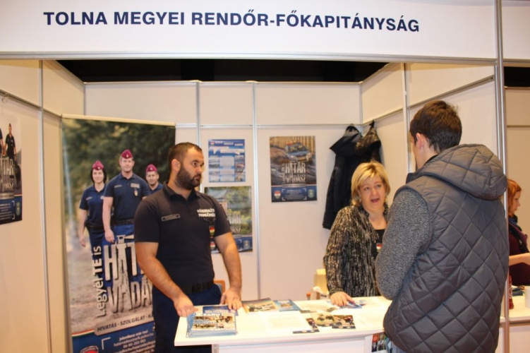 A pályaválasztási rendezvényen a Tolna Megyei Rendőr-főkapitányság Bűnmegelőzési Alosztálya ifjúságvédelmi prevenciós kiadványokkal, valamint „Házhoz megyünk” vagyonvédelmi programmal várta a diákokat.
