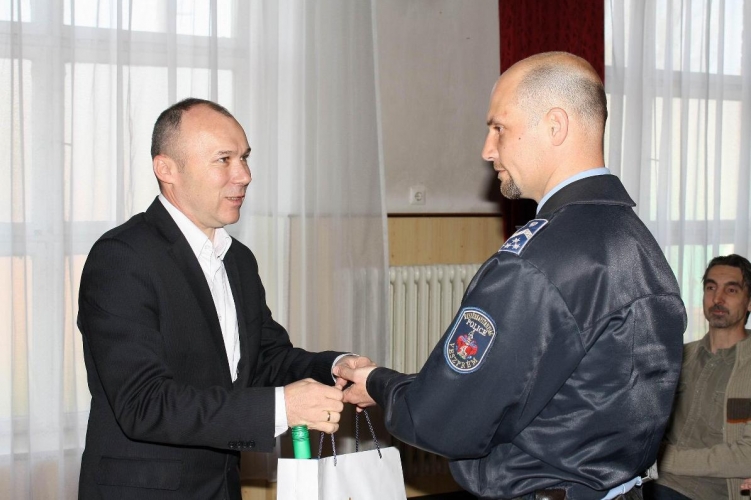 Porga Gyula, Veszprém Megyei Jogú Város polgármestere tárgyjutalmakat adott át a rendőrkapitányság állománygyűlésén.