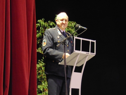 Ünnepi állománygyűlésen köszönte meg Lovasi Péter r. ezredes szolgálatellátását az Országos Rendőr-főkapitányság vezetője nevében Pozsgai Zsolt r. dandártábornok, az Országos Rendőr-főkapitányság Humánigazgatási Szolgálatának vezetője 2016. január 20-án.