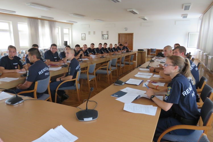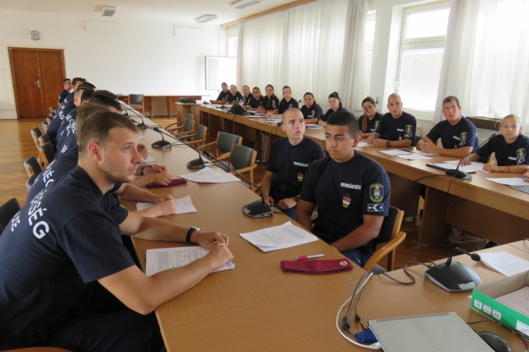 A rendőr tanulókat Sznopek Zoltán r. alezredes a Humánigazgatási Szolgálat munkatársa fogadta 2017. július 3-án a megyei rendőr-főkapitányság tanácstermében.