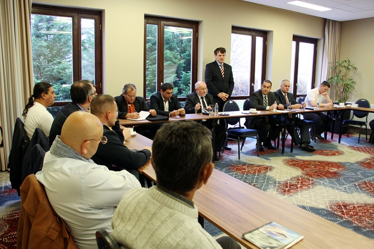 A Komárom-Esztergom Megyei Rendőr-főkapitányság, a területi és helyi roma nemzetiségi önkormányzatok képviselőivel, valamint a helyi rendőrkapitányságok kisebbségi összekötőivel tartott megbeszélést 2016. november 16-án, Tatán.