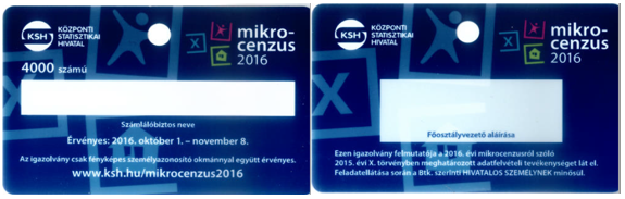 A számlálóbiztosi igazolvány kizárólag a számlálóbiztos személyazonosságát igazoló fényképes igazolvánnyal (személyi igazolvány, jogosítvány, útlevél) együtt érvényes.