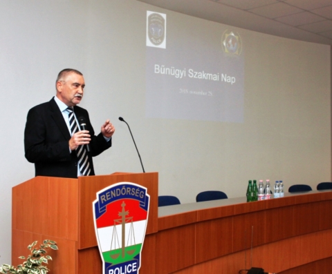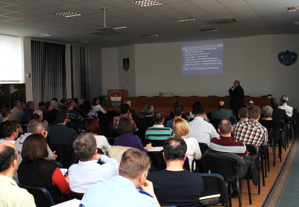 Dr. Tiborcz János r. dandártábornok úr, a Vas Megyei Rendőr-főkapitányság vezetője nyitotta meg a főkapitányság Bűnügyi Osztálya által immár második alkalommal megszervezett szakmai napot, amelynek keretében köszöntötte az egyes tárgykörökben munkájuk kapcsán érintett vezetőket, vonaltartókat. Az eseményen dr. Szokolai Zoltán r. alezredes úr, az ORFK Bűnügyi Főosztálya Bűnügyi Osztályának vezetője; dr. Fülöpné dr. Csákó Ibolya r. alezredes asszony, az ORFK Bűnügyi Főosztálya Bűnügyi Osztályának kábítószerügyi vonaltartója; Horváth Marianna r. alezredes asszony, az ORFK Bűnügyi Főosztálya Bűnügyi Osztályának életvédelmi vonaltartója; valamint Szabó Tamás r. alezredes úr, a Baranya Megyei Rendőr-főkapitányság Bűnügyi Technikai Osztályának vezetője általánosságban véve; illetve konkrét példákon keresztül is ismertette tapasztalatait és az országos gyakorlatot az egyes témakörök vonatkozásában. Majd az előadók a résztvevőkkel közösen megfogalmazták azokat a célkitűzéseket, amelyek a jövőben, a napi feladat-végrehajtás részét képezve hatékonyabb, eredményesebb munkavégzést tesznek lehetővé.