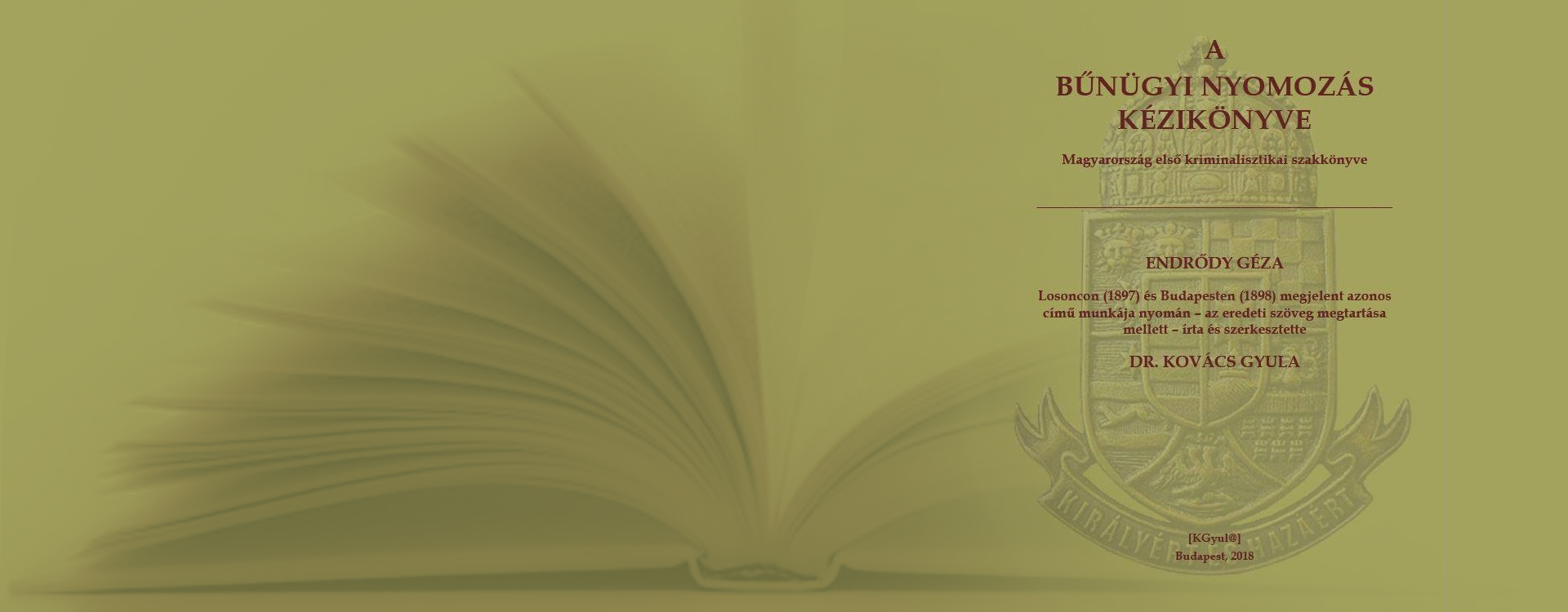 Magyarország első kriminalisztikai szakkönyvének legújabb kiadását 2018. március 7-én mutatják be a Rendőrmúzeumban.