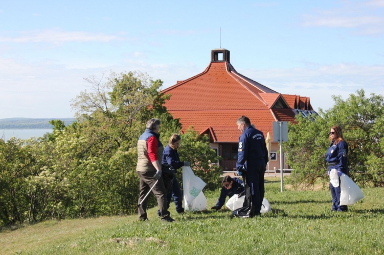 Az egyenruhások vezetőjükkel, dr. Vereckei Csaba r. dandártábornokkal az élükön indultak szemetet szedni Balatongyörökön és környékén.