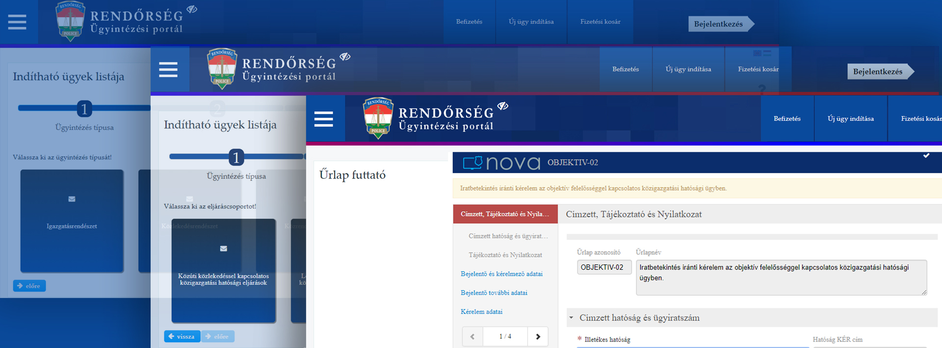 A rendőrség az elektronikus ügyintézést korábban ÁNYK űrlapok benyújtásának támogatásával és e-Papír szolgáltatás segítségével biztosította. Az ugyintezes.police.hu webcímen publikált új portálon azonban már bővülnek és egyben egyszerűsödnek is az elektronikus ügyintézési lehetőségek az új formátumú inNOVA űrlapok által. A szolgáltatásokat magánszemélyek és céges ügyfelek egyaránt igénybe vehetik, a fejlesztéseknek köszönhetően csökken a lehetőségeiket korlátozó bürokrácia, időt és utazási költséget spórolhatnak meg. Intézhetik meglévő hivatalos ügyeiket, illetve igény esetén új ügyet is indíthatnak. Önmaguk azonosítása minden esetben szükséges, ezt a meglévő Ügyfélkapus vagy Cégkapus belépési adataikkal tehetik meg. Új ügy indításakor két felület közül is választhatnak: a honlap fejlécéből kattintva egy letisztult, egyszerű felületen haladhatnak végig, míg a menürendszerből böngészve elérhetőek az űrlapokhoz tartozó részletes tájékoztató dokumentumok – például innen is. Folyamatban lévő beadványaikat könnyen nyomon követhetik, a státuszváltozásokról értesítéseket is kapnak. Az eljárások során felmerülő fizetési kötelezettségeiknek is eleget tehetnek a honlap felületén, bankkártyás fizetéssel, ezzel ügyeiket teljes egészében online intézhetik.