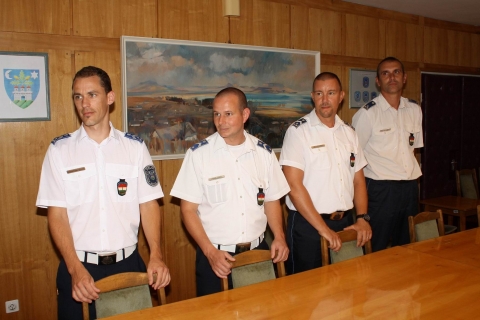 Balról jobbra: Szentpéteri István rendőr főtörzsőrmester, Farkas Gábor rendőr zászlós, Bujpál Tamás rendőr főtörzszászlós és Bakler Zoltán rendőr százados.