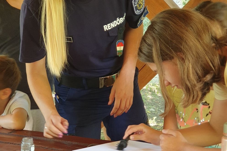 Volt minden, mi szem-szájnak ingere: bűn-, és baleset-megelőzési interaktív foglalkozások a segélyhívó telefonszám használatáról és hasznosságáról, a KRESZ tudás frissítéséről, ismerkedés az egyenruha darabjaival, vagy éppen beporzott ujjak nyomai a papíron.