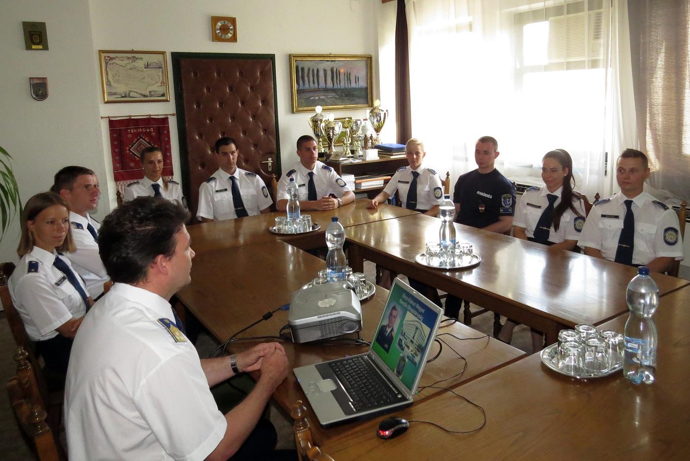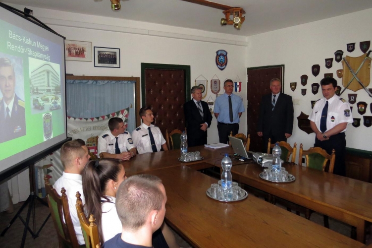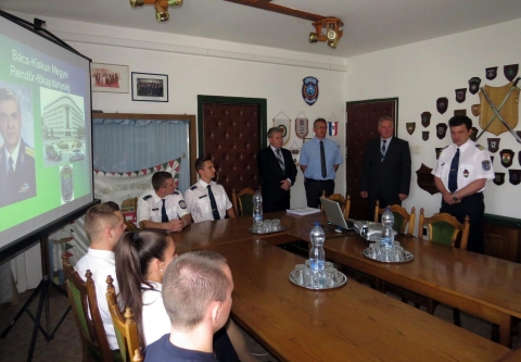 Szabó Vendel rendőr ezredes, a Bács-Kiskun Megyei Rendőr-főkapitányság bűnügyi rendőrfőkapitány-helyettese köszöntötte azt a 12 rendőrtisztet, akik 2016. július 1-jétől teljesítenek szolgálatot a megyében.