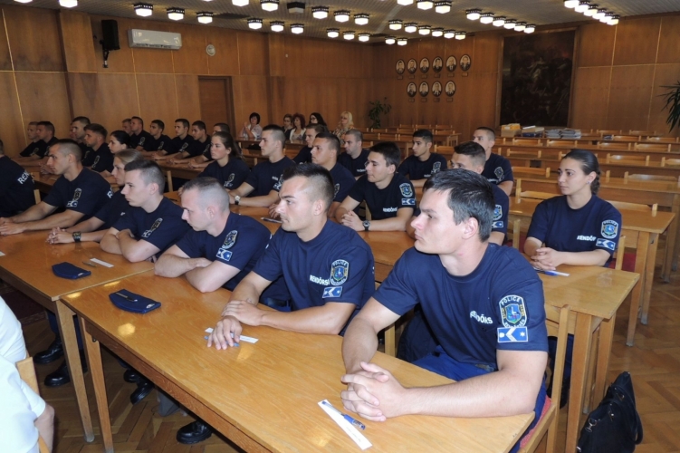 Dr. Széchy Zsolt r. ezredes, rendészeti rendőr-főkapitány helyettes köszöntötte az újonnan felszerelő próbaidős tiszthelyetteseket, akik 2016. szeptember 1-jén kezdték meg hivatásos szolgálatukat. Az elöljáró hangsúlyozta, hogy a törvényesség és a szakszerűség alapelveinek megfelelően, az állampolgárokat segítve végezzék mindennapi tevékenységüket és forduljanak bizalommal vezetőikhez.