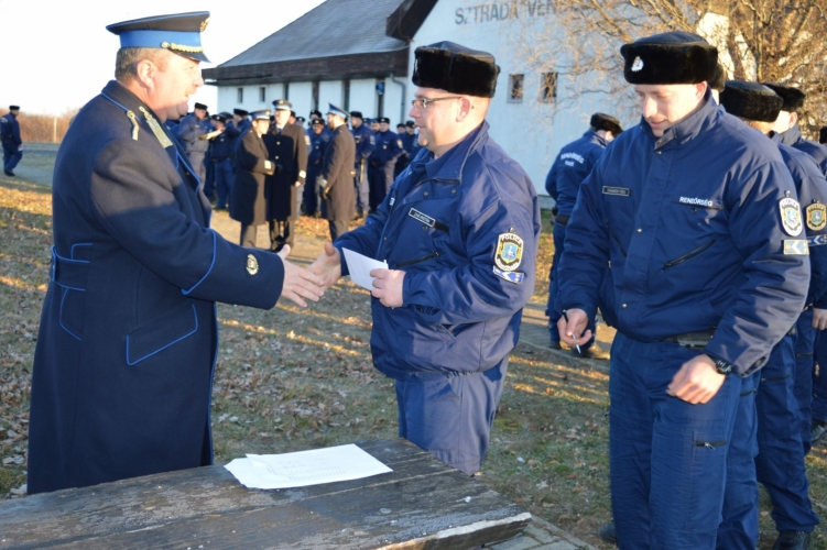 A megyei rendőrfőkapitány ajándékutalványokat adott át a munkatársainak. Köszönetét fejezte ki azért, hogy a családjuktól távol, a téli hidegben is helytállnak és méltóképpen teljesítik szolgálati feladataikat.