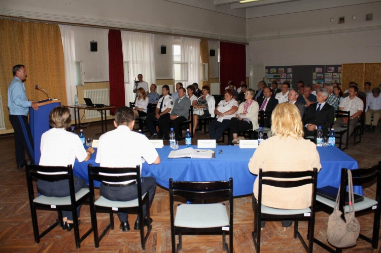 A meghívottakat – akik a járás 50 településének polgármesterei, a rendőrség társ szakmai szerveinek vezetői, képviselői, a nemzetiségi önkormányzatok vezetői, az oktatási intézmények fenntartói, valamint a történelmi egyházak képviselői voltak – dr. Töreki Sándor r. dandártábornok megyei rendőrfőkapitány köszöntötte. Ezt követően Szappan Csaba r. alezredes kapitányságvezető ismertette a Pápai Rendőrkapitányság aktuális közbiztonsági helyzetének jellemzőit. Kiemelte, hogy a területen a köznyugalmat súlyosan megzavaró esemény nem történt. Beszámolt több olyan bűncselekményről, amelyben rövid időn belül sikerült az elkövető nyomára bukkanni. A fórum keretében tavaly alakult szociális- és idősügyi munkacsoport, valamint gyermek- és ifjúságvédelmi munkacsoport eddigi tevékenységéről a munkacsoportok vezetői számoltak be. A hozzászólásokat követően főkapitány úr dicséretben és tárgyjutalomban részesítette Györgydeák Zoltán r. főtörzszászlós nyomozót, Szabó Péter r. törzsőrmester körzeti megbízottat, valamint a Mihályházi Faluvédő Egyesületet, Kemenesszentpéter és Marcaltő Község Polgárőrségét, továbbá a Nemesgörzsöny Polgárőrség Közhasznú Szervezetet. A jutalmazott rendőröknek és szervezeteknek jelentős szerepük volt abban, hogy 2014. június 8-án elfogták azt az elkövetőt, aki az elmúlt hónapokban több Veszprém megyei óvodába és iskolába is betört.