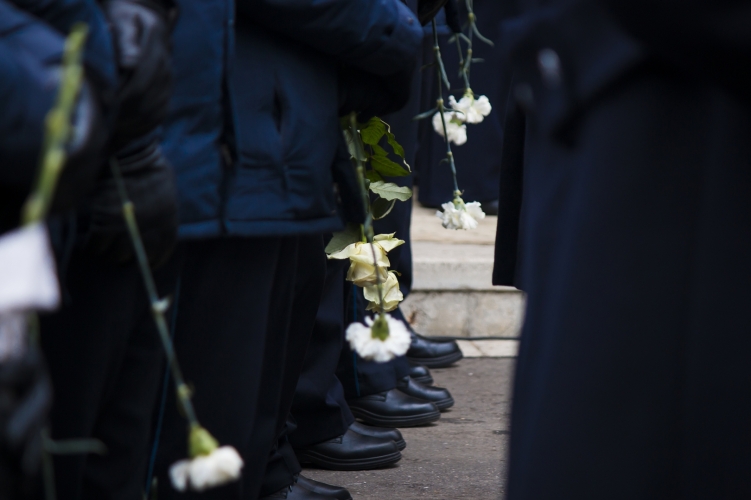 Hozzátartozók, barátok, kollégák vettek ma végső búcsút Mátyás Balázs Tamás posztumusz rendőr törzsőrmestertől.