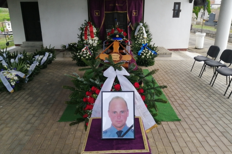 A hatályos járványügyi rendelkezések betartása mellett – az egyházi temetési szertartás előtt –, katonai tiszteletadással búcsúztatták a járőrparancsnokot május 14-én, Gellénházán.