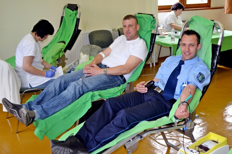 Segítő szándékú rendőrök és polgárőrök nyújtották karjukat a Mezőkovácsházi Rendőrkapitányságon rendezett véradáson.