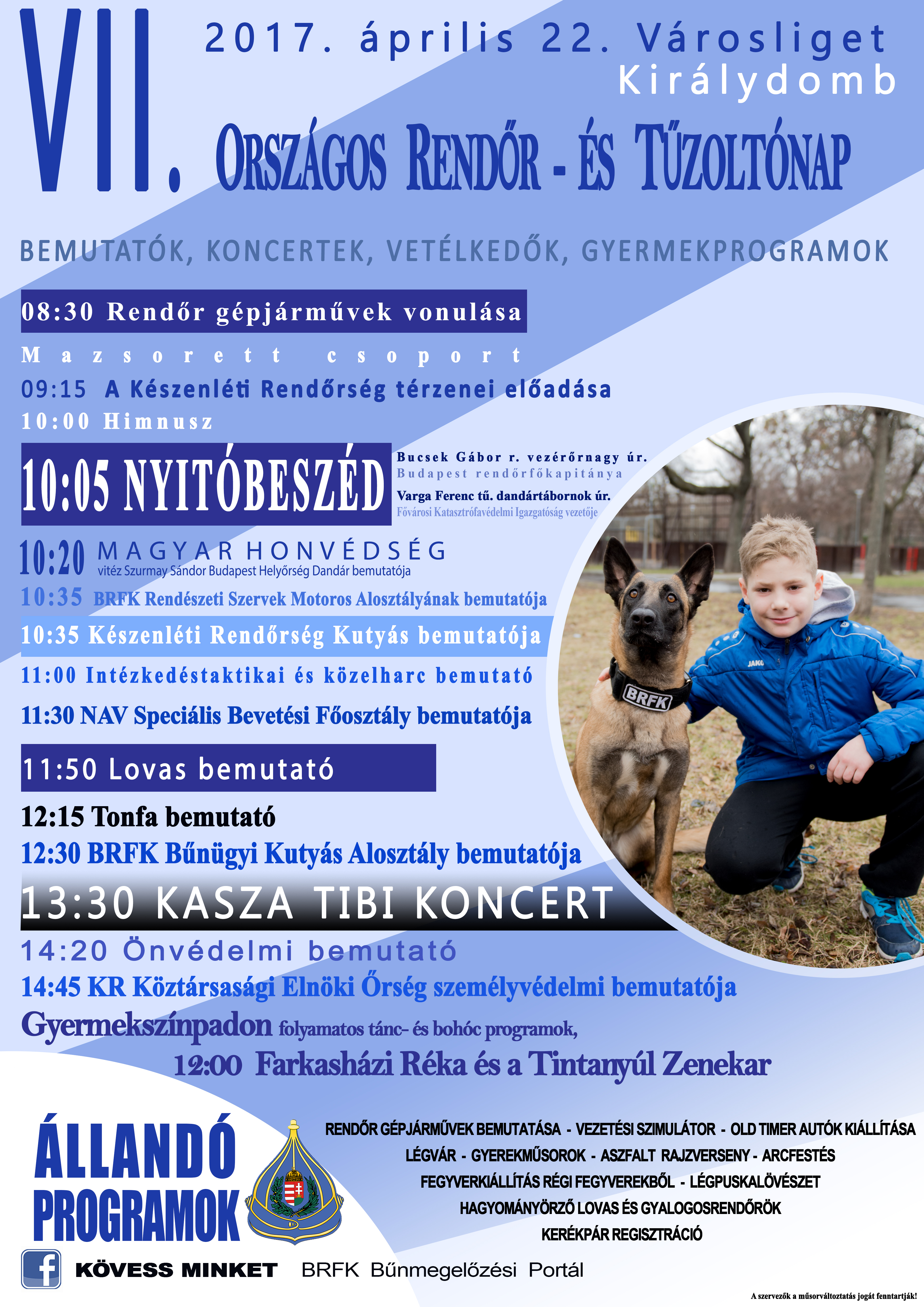 VII. Országos Rendőr- és Tűzoltónap Megosztás Idén is várunk mindenkit a Városligetben 2017. április 22-én bemutatókkal, koncertekkel, vetélkedőkkel és gyermekprogramokkal!