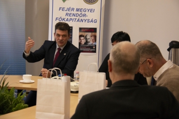 Szabó Vendel rendőr ezredes, Fejér megye rendőrfőkapitánya a megyei egyházi vezetőkkel folytatott tanácskozást Székesfehérváron.