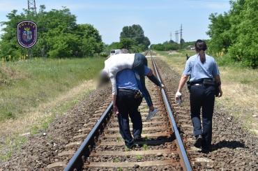 A járőrök gyalogosan vitték ki a bajbajutott asszonyt a vasúti sínek mellől.