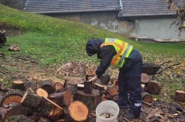 A Tamási Rendőrkapitányság egyenruhásai a szakadó esőben vágták össze a tüzelőt és gyújtottak be egy szárazdi idős asszony otthonában.