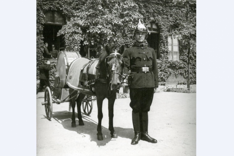 Barcs Tibor rendőrfelügyelő 1942 körül készített felvételén egy budapesti lovas rendőrt látunk a Mosonyi utcai rendőrlaktanya udvarán, mellette pedig egy Piri nevű pónilovat. Bármilyen meglepő: Piri a rendőrzenekar tulajdona, mondhatni, fuvarosa. Mögé apró kocsit kötöttek, a kocsira hatalmas zenekari dobot erősítettek. Piri a hangszerek szállításában segédkezett.
