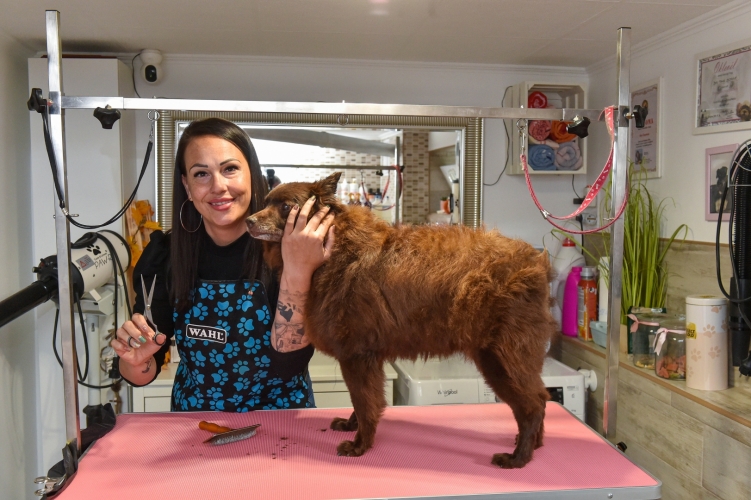 – Már rendőrként szolgáltam, amikor a kutyakozmetikusi OKJ-képzést elvégeztem Miskolcon, és a banktól személyi kölcsönt vettem fel, hogy meg tudjam nyitni a vállalkozásom, természetesen parancsnoki engedéllyel. Ez 13 éve volt, és meglepően hamar kialakult az ügyfélköröm, a kölcsönt fél éven belül visszafizettem – mondta az okleveles kutyakozmetikus, aki azóta továbbképzéseken és külföldi szaktekintélyek bemutatóval egybekötött előadásain is részt vett. – Az egri Megyesi Beatrixot tekintem a mesteremnek, sokoldalúságom neki is köszönhetem. Géppel is szívesen dolgozom, mert minden vágási és festési stílus érdekel, de ollós maradtam. Arra pedig különösen büszke vagyok, hogy sokan tartanak suttógonak. Ebben lehet valami, mert nálam és velem minden kutya megszelídül. Az is, aki már morgott kozmetikusra, de olyat is vágtam, aki bele is mart egy kollegába. Nyalják a kezemet, bújnak az ölembe, és már azon is látom, meg persze érzem is, hogy élvezik a dolgot, amikor megállnak egy helyben, és nem ficeregnek. Tudom, hogy tudják, amit teszek velük, attól jobb lesz nekik. Alapelvem, hogy mindegyik kutyára annyi időt fordítok, amennyit igényel. És ha azt veszem észre, kicsit felpörgette magát, szárítás közben is megállok. Megsimogatom, és természetesen adok neki jutifalatot.