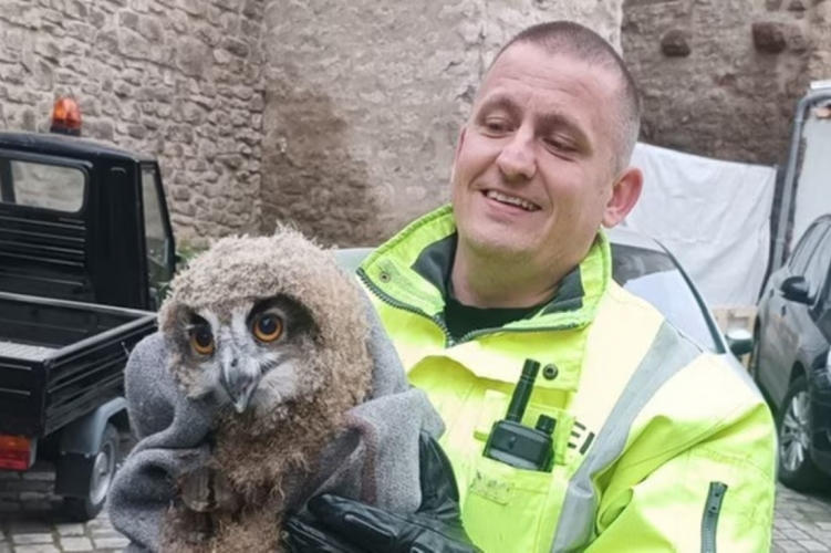 Az alsó-szászországi Einbeck óvárosában járőrök siettek egy nagy fülesbagoly kicsinyének segítségére, miután arról érkezett bejelentés, hogy riadtan gubbaszt a várfal tövében potenciális életveszélyben. A rendőrök kesztyűs kézzel bántak vele, majd felhívást tettek közzé.
