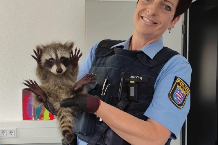 Kölyök mosómedve sipákolt a Frankfurt melletti Schlüchtern egyik szupermarketének parkolójában, ahonnan a helyi rendőrségre került. Ott egy főbiztos vette a szárnyai alá, és addig telefonálgatott, amíg nem talált számára megfelelő elhelyezést. Okkal volt nehéz a rendőrnő dolga.