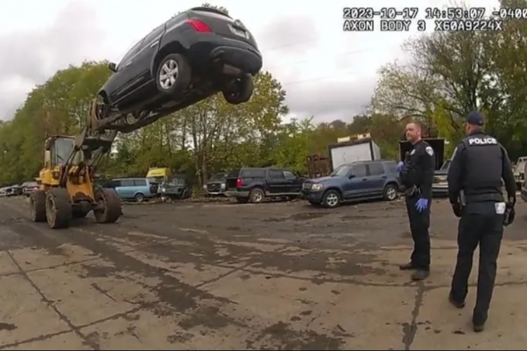 Ohio fővárosában autóbontóból akart alkatrészeket lopni egy 26 éves férfi, de az egyik alkalmazott meglátta, amint beült egy kocsiba, és sajátos módszerrel tartotta vissza: villás targoncájával felemelte a járművet. Így várták meg a járőröket, akik a rendhagyó elfogásról felvételt készítettek.