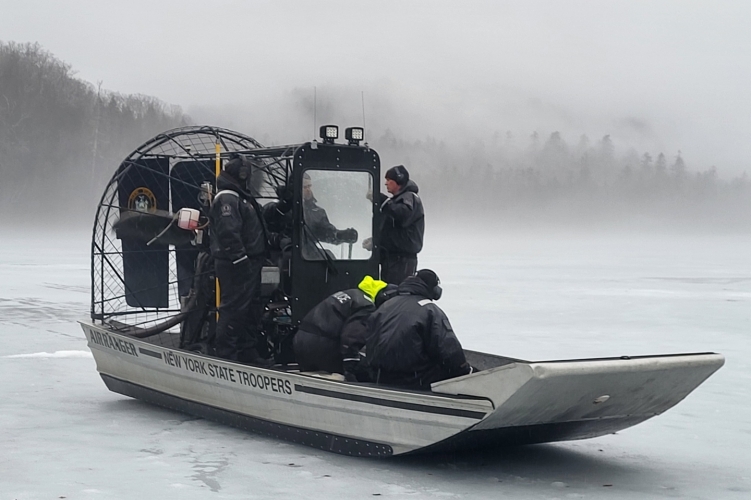 New York a tavak állama. Északon tengerként öleli az Ontario, nyugaton az Erie, a területén pedig öt nagy – a Cayuga, a Champlain, a George, az Oneida és a Seneca –, továbbá 7600 kisebb tó található. Nem csoda, hogy az amerikai államrendőrségek közül először ott hoztak létre vízimentőegységet 1932-ben, bár az Underwater Recovery Team (URT) szó szerinti fordításban víz alóli mentőcsapatot takar, mert zömében búvárokból áll. Több mint húsz szolgálati hajójuk közül kilenc airboat, melyeket stratégiai állomáshelyeken tárolnak, hogy a jegesedést követően a lehető leggyorsabban érjék el a nagyobb víz-, azaz jégfelületű tavakat; ebben a pillanatban is mindenhol menetre készek. Ezek valójában ponyvázott vezetőfülkével ellátott mocsárjárók, és a kormányosnak szüksége is van védelemre, mert jeges szélben is 80 km/h-val szoktak hasítani, amikor beszakadt emberről érkezik bejelentés, és versenyt kell futni a másodpercekkel. Ők viselik a legbéleltebb egyenruhát, és szolgálati felszerelésükhöz fülvédő is jár, mert a visító dízelmotor és a terelőlapos légcsavar összhatása jóval átlépi a zajterhelési határértéket.