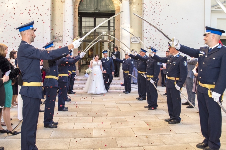 Valódi kék lámpás esküvő zajlott október 11-én Békéscsaba belvárosában, az evangélikus nagytemplomban. Első találkozásuk napra pontosan második évfordulóján egy mentőtiszt és egy rendőr esküdött egymásnak örök hűséget. A fiatal pár, Takács Réka és Balogh László őrmester, a Békési Rendőrkapitányság járőre munka közben futottak össze először. Ugyanarra a helyszínre küldték őket, és tették a dolgukat, mint mindig. Réka már a mentőkocsiban dokumentálta a történteket, amikor az őrmester úgy gondolta, valamilyen ürüggyel megszólítja. Odament hozzá, és bár volt neki bőven, de kért tőle egy pár védőkesztyűt. A bájos hölgy nem tulajdonított ennek nagy jelentőséget, munkatársai azonban igen.