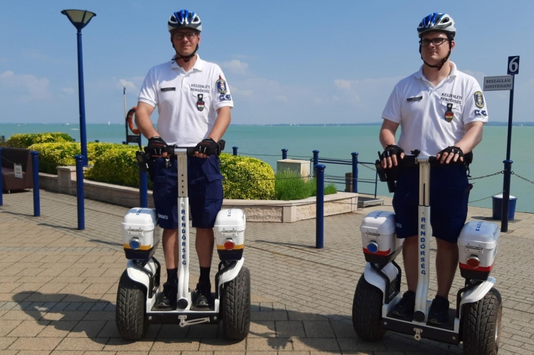 Balatonfüreden álltak szolgálatba a Készenléti Rendőrség kollégái kétkerekű segway járműveikkel, hogy segítsék a szezonban a helyi kollégák munkáját. A fürge kis szerkezetek hasznossága már bebizonyosodott a főváros frekventált, turisták által kedvelt részein, most a Balatonnál is megjelentek. Lényegesen gyorsabbak, mintha gyalog járőröznének, könnyen manőverezhetők. Nem mellesleg alkalmasak a kapcsolatteremtésre a nyaralókkal, hiszen látványosságként szívesen fotózzák őket a turisták.